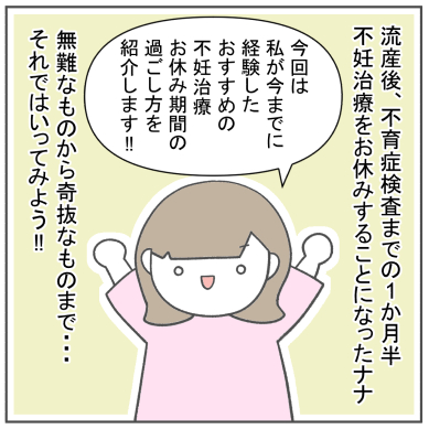 たびたび訪れる不妊治療のお休み期間。以前も「お休み期間の過ごし方」というタイトルでマンガを描いた気がしますがまた描きました。お酒を飲んだり美味しいものを食べたりお出かけしたり…皆さんはどのように過ごしているでしょうか。