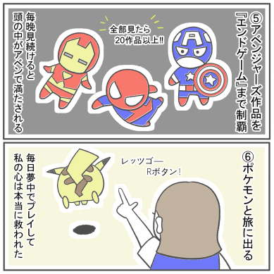 私が今までのお休み期間にやった中で、特におすすめなのが「ピアスをあける」「シリーズ物の映画を制覇する」「ゲームを1本全クリする」です。これらのおすすめポイントは、不妊治療の悲しい気持ちを消し去ってくれる(忘れさせてくれる)という点です。一時的にでも不妊治療のことは忘れて夢中になれるものがあると心も癒されるのではないかと思います。